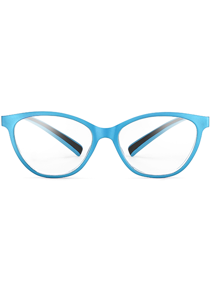 Occhiale da lettura in grilamid con colore metallizzato in forma cat-eye. Materiali di qualità flessibili e resistenti con innovative aste da collo e terminali in gomma. Lenti con filtro luce blu per rendere confortevole la lettura da device. Colore turchese opaco.