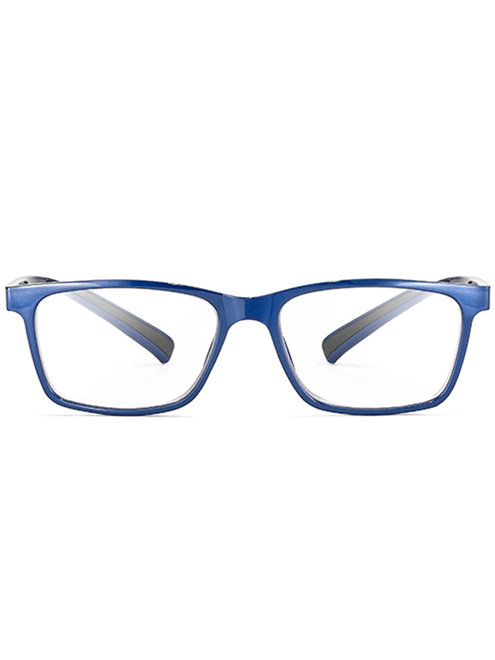 Occhiale da lettura in grilamid con colore metallizzato in forma rectangle. Materiali di qualità flessibili e resistenti con innovative aste da collo e terminali in gomma. Lenti con filtro luce blu per rendere confortevole la lettura da device. Colore blu scuro lucido.